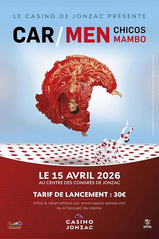 LE CASINO DE JONZAC EST TRÈS HEUREUX DE VOUS PRÉSENTER À NOUVEAU LA COMPAGNIE CHICOS MAMBO DANS SON SPECTACLE CAR/MEN AU CENTRE DES CONGRÈS DE JONZAC.