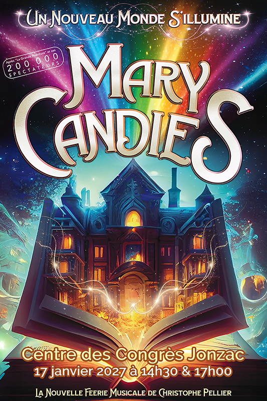(Re)découvrez l’histoire de Mary Candies dans un spectacle réinventé comme vous ne l’avez jamais vu : nouveaux décors et personnages, costumes étincelants et une toute nouvelle mise en scène encore plus spectaculaire.
