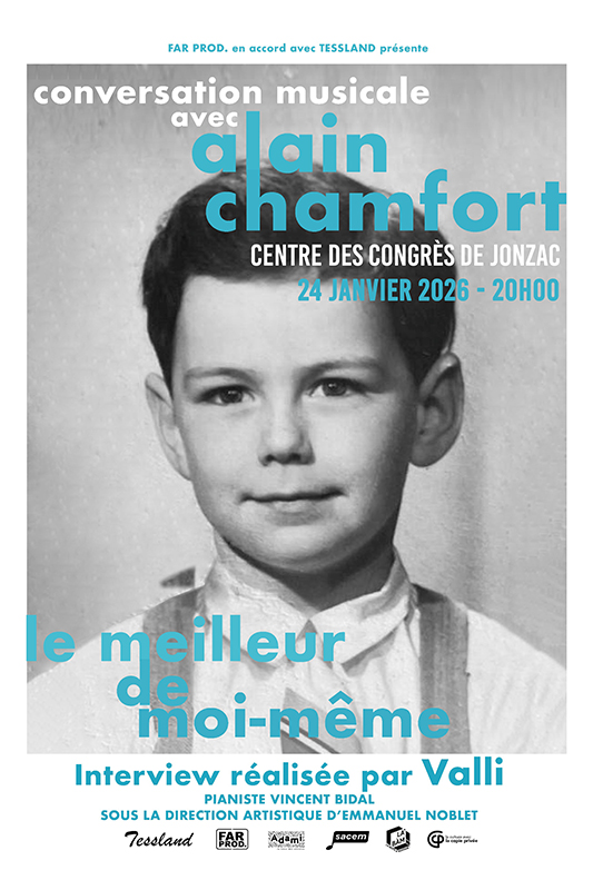 En amont de cette actualité multiple, Alain Chamfort a imaginé donner un rendez-vous privilégié à son public : un spectacle qui réunit les grandes chansons de sa carrière, dans lequel il se livrera au jeu d’une interview en direct. Sur scène, accompagné de son pianiste et de sa complice de toujours, la chanteuse et animatrice franco-américaine Valli, il nous fera partager les anecdotes et grands moments de sa vie professionnelle : son démarrage de carrière comme musicien, notamment au côté de Jacques Dutronc, ses débuts de chanteur avec Claude François, les années « Gainsbourg » avec qui il fera trois albums, la naissance de ses chansons, les rencontres qui ont marqué sa vie, les succès, les déboires, tout ce qui fait le meilleur de nos vies. Entre confidences et piano, ce rendezvous inédit remettra en lumière les chansons de son répertoire (Manureva, Bambou, Chasseur d’Ivoire, Traces de toi, la Fièvre dansle sang, Clara veut la Lune…) et d’autres pépites, moins connues, qui émaillent les albums de sa carrière.